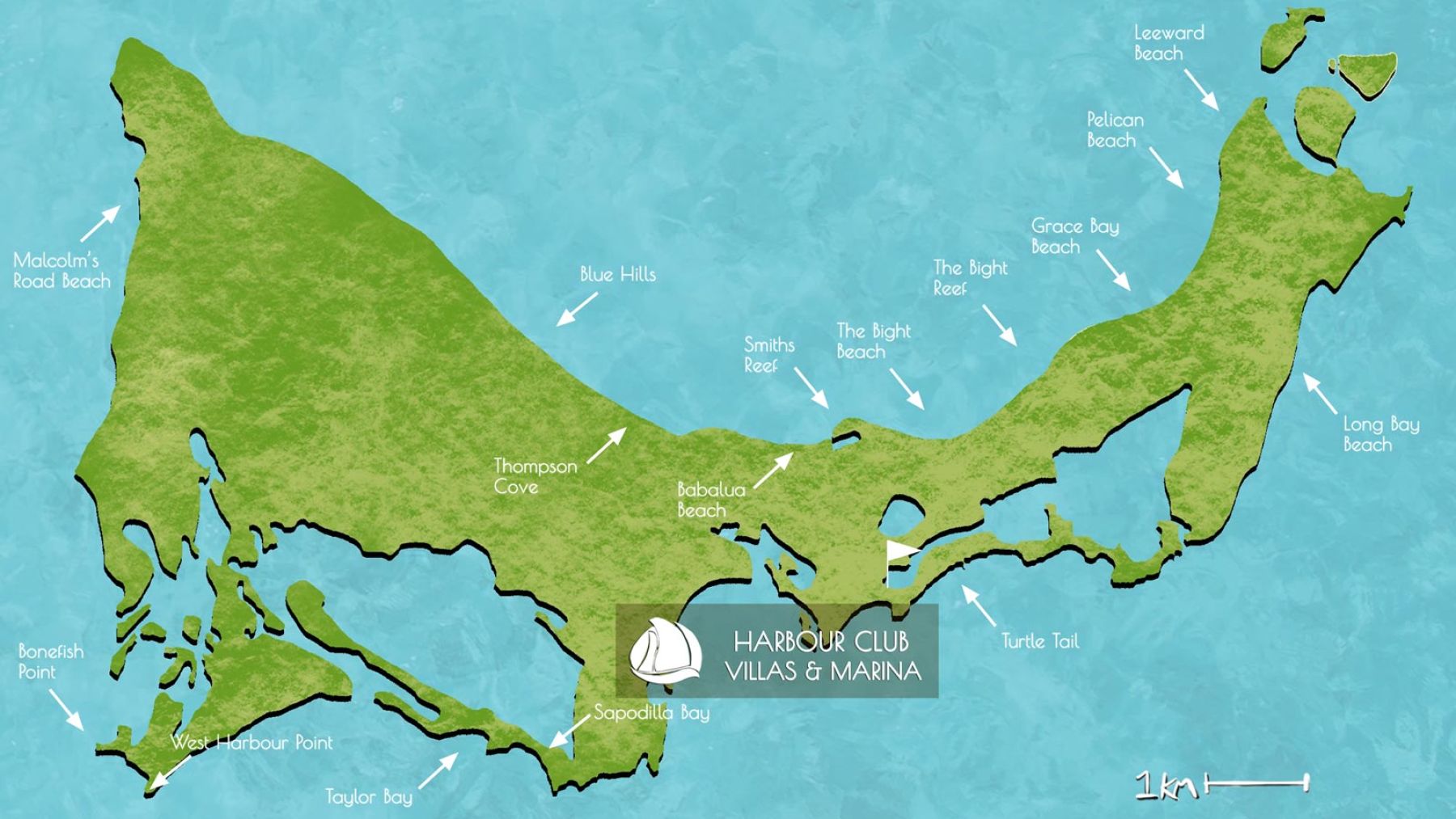 - Long Bay Beach - 12mins from Harbour Club Villas: Situated on the southeastern side of Provo, Long Bay Beach features miles of white sand and shallow waters, making it perfect for families and watersports enthusiasts, especially kiteboarding. The beach is known for its wind and wave activity, offering a different experience from the north side's tranquility.
