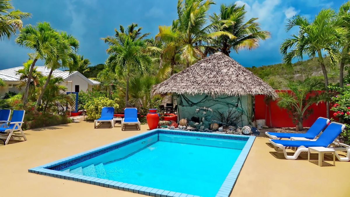 Our villas boast modern amenities like flat-screen TVs, Wi-Fi access, and comfortable queen-sized beds. The property includes a pool and patio for relaxation, a shaded tiki hut for casual dining, and complimentary kayaks for exploring nearby bonefishing flats.